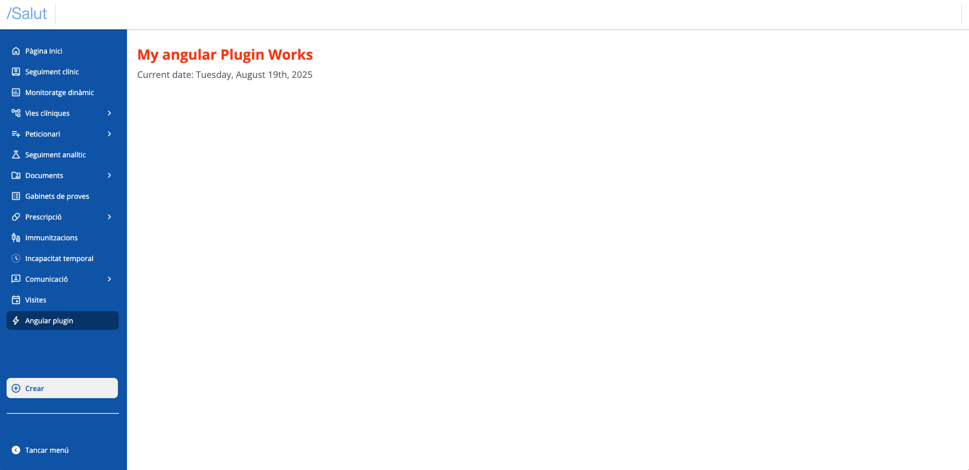 I en clicar en el botó "Angular plugin", veurem el nostre plugin funcionant i mostrat a la regió principal:
